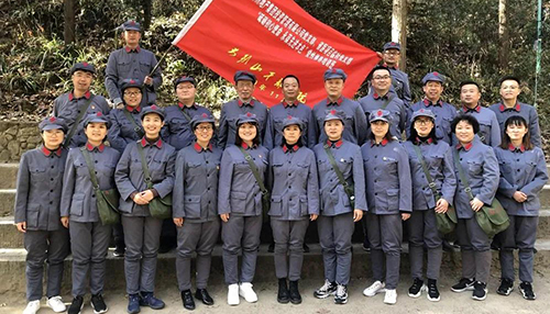 14日,學員們走上“志仁小道”,在這條曲折山路上,新縣首位共產(chǎn)黨員——王志仁奔走宣傳革命思想、努力開展革命活動。在爬山的途中路遇陡坡,旁邊的隊友立刻伸出援助之手;渴了,沒事我的水給你先喝……身著紅軍服,腳走崎嶇道,學員們仿佛置身那段熱血歷史中,用自身行動弘揚革命先輩不畏艱險、頑強斗爭的光榮傳統(tǒng)。 下午在新縣鄂豫皖蘇區(qū)首府烈士陵園,全體學員懷著肅穆的心情向革命先烈們敬獻花籃并真誠致禮,在革命烈士事跡陳列廳重溫入黨宣誓。陳列的一個個實物、一幅幅畫卷,將蘇區(qū)可歌可泣的英雄事跡清晰地展現(xiàn)在大家面前,舉起右手,莊嚴宣誓,英雄們的感人事跡激勵著我們,在來之不易的和平年代,用實際行動來弘揚革命先輩用鮮血和生命凝結(jié)的紅色文化。