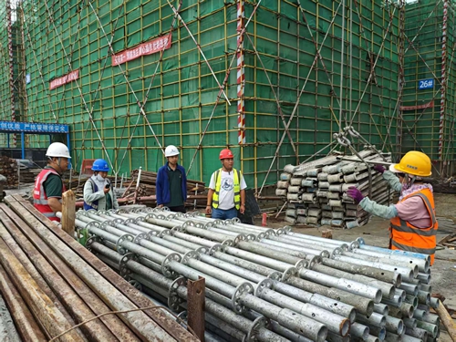 來到3樓頂板上方,工人們正搭建防護網。“他們是這個工作面的開荒者,危險系數最大。”葉劉杰說,只有防護網搭建完畢,木工、鋼筋工等不同班組才能陸續(xù)入場施工。仔細查看每道工序,并對當班工人叮囑一番注意事項后,葉劉杰才放心離開。