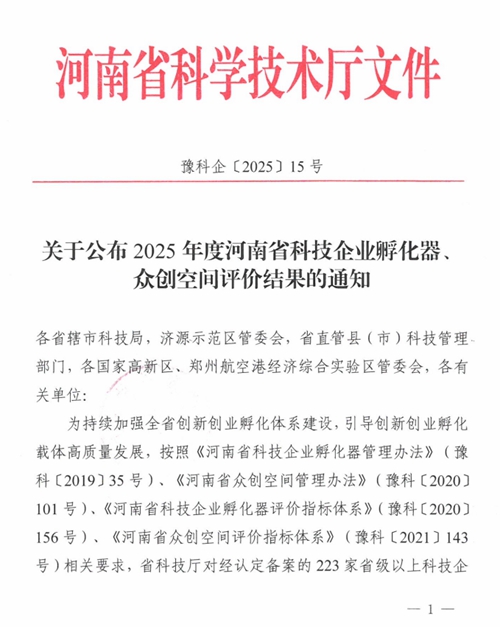 近日,河南省科學(xué)技術(shù)廳正式發(fā)布《關(guān)于公布2025年度河南省科技企業(yè)孵化器眾創(chuàng)空間評價結(jié)果的通知》(豫科企〔2025〕15號),鄭州城發(fā)集團金岱智慧產(chǎn)業(yè)園憑借扎實的孵化服務(wù)能力、突出的創(chuàng)新培育成效,在全省223家省級以上科技企業(yè)孵化器的嚴(yán)格考評中脫穎而出,榮獲最高考核等級——“優(yōu)秀(A類)”!
