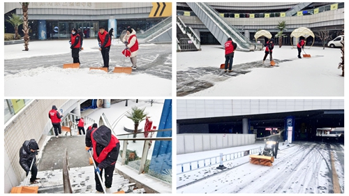 奧體中心迅速啟動(dòng)雨雪應(yīng)急預(yù)案,聚焦核心通道與經(jīng)營(yíng)區(qū)域,多輪布撒融雪劑、清除積雪、防護(hù)設(shè)施,不間斷開(kāi)展防墜雪巡查。黨員突擊隊(duì)帶頭沖鋒,對(duì)南北門(mén)、東廣場(chǎng)等重點(diǎn)區(qū)域掃雪除冰,全力保障人員與車(chē)輛通行安全,確保運(yùn)營(yíng)平穩(wěn)有序。
